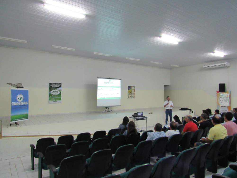 No dia 31/03/2017 foi realizada, na cidade de Palmeira d'Oeste - SP, palestra sobre o uso de Fósforo e Gesso em pastagens. O evento, organizado em conjunto com a Casa da Agricultura de Palmeira d'Oeste, através da engenheira agrônoma Helena Adélia da Silva, contou com a presença de cerca de 40 pecuariaristas da região. Os palestrantes do evento foram os engenheiros agrônomos Rodrigo Scandiuzzi e Rafael Macedo, ambos da empresa AGRONELLI, parceira representada pela TERRANOVVA.